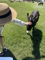 Территория большая, но все зоны грамотно разделены. Есть мини зоопарк с павлинами, лебедями, утками, петухами-курицами и злым индюком (передаю привет дикарям соотечественникам которые рвут перья у павлина с хвоста - варвары). Так же выпускают пастись на газон у моря двух осликов, бычка и козлов с козами. Козлы вроде не злые, но зажравшиеся, особо еду не ели, а вот ослики напротив очень общительные и яблоки ели с удовольствием. Бычок конечно злой немного, но и он не отказывается от яблок, гладить себя не дает. Все животные на привязи и безопасны. Есть коты и котята. И немного щенков (они на своей волне). Есть пинг понг (он постоянно занят). И какие то еще игры. 2 раза в день волейбол.