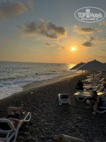 Пляж крупная Галька и мелкая Галька при входе, не понимаю недовольство людей с детьми, вы когда едете отдыхать, вы хотя бы на гугл карты зайдите , посмотрите куда вы едете. Есть пирс с лестницей, можно сразу с него заходить в море. Море чистое, приятное , но очень соленое. Лежаков в целом хватало. Во второй половине дня народу в 2 раза меньше.