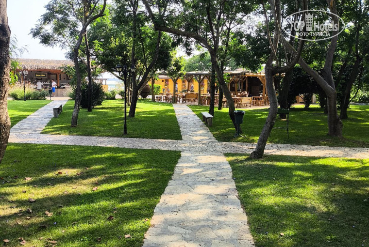 По территории - она достаточно большая. Как я и люблю, есть куда походить вечером. Любили с дочкой искать черепах. На территории достаточно скамеек, деревьев и мест интереса. Достаточно зеленая территория. Расположение бассейнов, баров и ресторанов комфортное. Не понятно только зачем тут огромное футбольное поля, которое было занято только иногда парой тройкой ребят.