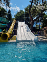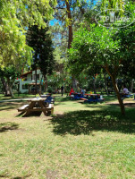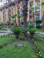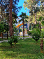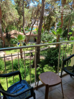 4. Территория. Тут просто восторг! Отель утопает в зелени, все в соснах, апельсиновых и лимонных деревьях, пальмах, на территории есть кофейня, девушка готовит вкусный кофе, есть небольшая кондитерка. Тут же качели, столики, гамаки, тренажеры, на которых были заняты дети. В отеле очень много котов, котят и беременных кошек, если кому-то важно. Благодаря деревьям создается тень и прохлада, с балкона тоже шикарный вид.