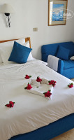 На пляже персонал за бакшиш занимает шезлонги для постояльцев на 1 линии (чаще всего для итальянцев, кто появляется на пляже к 11.00), но при этом выкидывает вещи других людей! Такое безобразие я встретила 1 раз, за много раз посещений Египта :(( Я первая прихожу на пляж и так вышло, что я заняла шезлонги на 1 линии в 7.30 и забыла свои тапки, не стала возвращаться за ними, зная, что мы скоро вернёмся. Пошла за ребенком в номер и вернувшись в 8.05 обнаружила на шезлонге 123 (номер шезлонга я всегда запоминаю, чтоб удобней найти) итальянских туристов! Понимая, что полотенца, которые были на шезлонгах и тапочки пропали, я позвала бич боя, говоря, что у нас украли вещи, показала шезлонги, где все лежало, где стояли тапки, он вызвал другого бич боя, мои недовольные крики привлекли охрану, в итоге собрала вокруг пол пляжа зевак, прибегает второй бич бой, здоровается с итальянкой, прям как лучшие друзья, разве что не расцеловались, sorry-sorry (перед ней, на меня 0 внимания), "я помогу вам найти другой шезлонг, прошу вас мадам за мной", а мне показывает на полотенца сваленные кучей на столике со словами "разве это не ваши вещи, мадам?". Ну да, я ведь всегда грязные тапки в полотенце заворачиваю так чтобы не видно было (сарказм). И уходя и продолжая "облизывать" итальянцев, мне вместо извинений была кинута фраза "лучше приглядывайте за вашими вещами, мадам!" Если до этой фразы я не собиралась скандалить, думая что инцидент улажен и вещи найдены, то после нее мои предохранители слетели - я дошла до главного менеджера, вот тогда уже извинялись все - нам предоставили резерв на понравившийся шезлонг на 2 дня, тарелку десертов от отеля в номер и прочие ништяки. Я не одна такая, сразу после инцидента ко мне подошла иностранками рассказала что несколько дней назад с ними произошел тот же случай, но их вещи успели перенести на другой жезлонг у входа, а на их месте отдыхал другой "месье". И персонал сделал вид, что они просто шезлонг перепутали, всегда мечтали лежать у входа, а не на 1 линии (опять сарказм если что) Наши просто не успели перекинуть, мы рано вернулись. Безопасность на пляже и сохранность вещей пока вы например плаваете с маской по 30-40 минут под большим вопросом, а это очень важно!