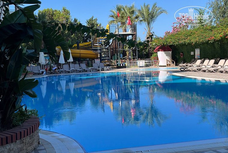 Короткий отзыв будет таким: Отель отличный, компактная территория, много зелени, игровая площадка, 3 бассейна ( 1 детский),переход подземный до моря. Море: пляж песок+ мелкая галька) Заход в море плавный, море чистейшее лежаков всегда хватало! Питание как в стандартной 5*, что очень удивило, разнообразие фруктов, сладостей, салаты, закуски, выпечка, мясо/рыба - на отлично. На территории 2горки, дети были довольны! Перекус на пляже- вкусно. Сам номер - в целом не плохой. мебель саренькая, сан узел так же. Но нам его пришлось отвоевывать и ругаться с ночным администратором. который вместо4х местного номера , дал нам 3х местный и пытался убедить нас что именно этот номер мы и бронировали! Утром оставили жалобу тур оператору, объяснили всё другому , более адекватному администратору, потратили нервы, но получили отличный 4х местный номер с видом на бассейн. В общем и целом отдых вышел отличным за исключением некоторых нюансов. Отель советую!