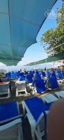 Пляж находится рядом с отелем, удобно ходить. На пляже, как и в столовой мест не хватало. Еще некоторые оставляли полотенца с вечера. Поэтому не стесняйтесь, ложитесь на такие лежаки или скидывайте полотенца таких умников. У отеля на побережье самый лучший пляж и бирюзовое, чистое, горячее море. Но не приятно было, что приходилось обходить лодочную станцию и периодически пахло моторным маслом в море.