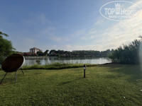 Отель был выбран для прогулок вечерами и акцент был именно на большой территории что и получили . Территория невероятно зеленая, красивая . Аромат в воздухе просто волшебный , аж сладкий . Хвоя, цветочные деревья , трава и первая фишка отеля -ручей через всю территорию . Есть зона бунгало , есть главное 7-ми этажное здание , только лифт ходит до 6-го этажа и для кого-то может быть критичен этот момент . В части домиков со второго этажа есть выход с горок , детских горок))) задумка интересная , но не видала чтоб так спускались почему-то . По отелю разбросаны фигурки жирафов 👍🏻Небольшие детские зоны с качелями , горками , но уже подустаршевшее и требует замены. И вторая фишка это мост через речку, который разводят если идут небольшие катера . Через мост мы попадаем в зону кофе а-ля карт и пляж . И тут очень красиво !