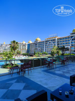 Территория отеля небольшая, но уютная, ухоженная. Зона аквапарков хорошая, есть большой навес у фудкорта, зоны разделены на большие горки и детский уголок.