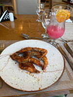 Питание: Отель имеет основной ресторан Horizon с наличием 16+ без детей, питание разнообразное, огромных очередей не видели , голодными не были, в меню мясо ( баранина, курица, говядина), рыба и морепродукты, детское меню, гарниры, десерты , из алкоголя- вино, коктейли, пиво, сезонные фрукты: инжирные персики, дыни, виноград, яблоки, груши, сливы, иногда манго. Кроме того , есть 7 ресторанов a la carte(6 бесплатных и 1 рыбный платный), побывали в 3- х из них, рекомендую все: азиатский,гриль, итальянский. Фотографии блюд прилагаю.Бары работают с 10 до 18 ч.