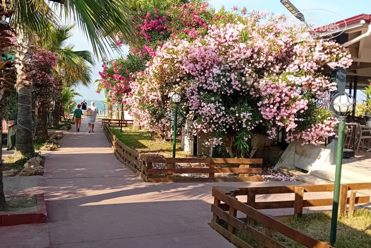 Отдыхали в отеле в сентябре 2024г.и решили вернуться в июне 2025.Да,в том году не очень понравилось,было много минусов по питанию.Выбор блюд был меньше,в этом году больше зелени,овощей,пироженых,разнообразней еда.На завтрак всегда оладьи,яичница(раньше что-то одно!).Радует,что в столовой напитки стали наливать только в стекло,а не в одноразовые стаканчики,как в том году.Кроме яблок и апельсин появились арбузы.В этом году жили в 18 домике,уборка заключалась в выносе мусора,замене полотенец ,за 10 дней один раз поменяли белье.Да,теперь не дают мороженое,как раньше,нет гезлеме.Зато в лавке в отеле мороженое за деньги,на любой вкус.Территория очень зеленая,пляж отличный,море спокойное,если плавать в бухте соседнего отеля-собственно ради него мы сюда и летим!Анимация отличная,целый день какая то движуха,вечером мини диско и вечернее шоу.Мурат отдается на все 100%,респект ему!В отеле много иностранцев отдыхает,раньше меньше было.Отель находится в Конаклы-,отличный район.В шаговой лоступности магазины,торговые центры,аптеки,ночной клуб.Рядом остановка,можно самим съездить в Аланию.На ресепшен работают очень отзывчивые сотрудники,всегда помогут,Сабрина хорошо говорит по русски,ребята через переводчик общаются.С удовольствием вернусь в этот отель еще и в 3ий раз!