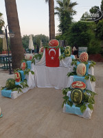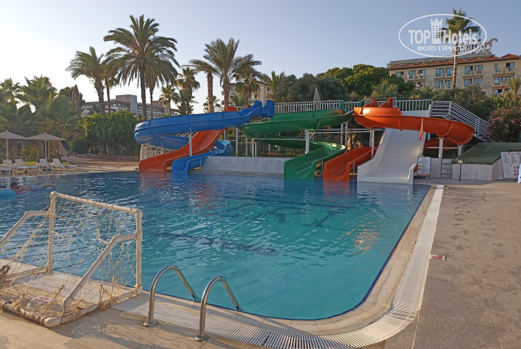 Территория: Похоже недавно переделали бассейны, установили комплекс типа мини аквапарка и в другом большом бассейне 6 горок, их включали не все. По расписанию. 2 часа после завтрака и 2 часа после обеда. На территории много зелени, фруктовых и цветущих деревьев. Интернет работает в лобби и чуть в столовой и у маленького бассейна. Есть тенистый корт. Брали ракетки, дети играли. Часто можно было пройти на территорию другого отеля ( один хозяин). Там конечно 5* бассейны побольше и горки повыше, но намного больше народу. Ходили пару раз брали мороженое и плавали в бассейнах, без проблем. Там же проходила анимация. Бинго и караоке иногда представления.