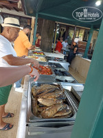 Еда: Довольно разноообразно. Была рыба разная в разные дни, говядина с овощами, кура, индейка, баранина в лаваше. Много овощей, салатов. Десертов большой выбор. На завтрак пекли оладушки, жарили яичницы. По вторникам как-то особенно много вкусного было ( шаверма, кура гриль, рыба запеченная...) На пляже жарят котлеты и картошку фри. Можно собрать бургер. Пекут лепешки. Вода в бутылках в холодильниках в свободном доступе.