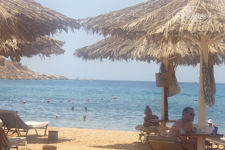 Замечательный пляж с пологим входом, чистой водой (иногда с мимо проходящих катеров прибивало бутылки и обёртки, но работники пляжа всё оперативно убирали), лежаков всем всегда хватало, помогали найти место спасатели, в течение дня на пляже разносят воду со льдом, бар работает с 8 утра.