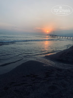 ПЛЯЖ и БАР на пляже: лежаков достаточно по 2 стороны от дорожки, всегда есть свободные, большой минус пляжу - нет матрасов на лежаках, береговая линия широкая, есть место для игры в волейбол, бар (только напитки - чай, кофе, соки из автоматов, кола, пепси, спрайт, пиво - на этом все),работает 1 бармен, очереди постоянно, 2 человека на баре решили бы проблему очередей.Вход в море - вырезан проход 2 м *2 м, но плиты в море везде, практически поплавать не возможно, только если уходить за перегородку, на протяжении всего огороженного пространства глубина по плечи. Частые волны, за наше пребывание штиль был 2 раза. На пляже 2 спасателя, удивило, что они оба отзывчивые и отлично следять за отдыхающими в море)) Мужчины молодцы, искупали инвалида - колясочника, это очень порадовало, что вот так запросто они помогли.Обязательно для купания и комфортного захода нужны аква тапки, без них все выходят ранеными. Музыка на пляже только в баре и то еле слышна, это минус, можно было бы поставить колонку и отдых был бы лучше)) Тут же с пляжа есть выход на променад. Пляжные полотенца бесплатно, без депозита.