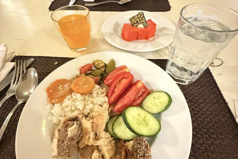И последнее прям вишенка на торте: при выселении ключ попросили отдать и отправили из персонала проверить номер за мной, я села в трансфер и жду, меня выдернули уже из машины и сказали что не хватает полотенца, заставили идти в номер искать, и полотенце которое висело в 6 утра когда я умывалась, его просто не оказалось на месте, меня заставили заплатить за него 6$ ( думаю это его чаевые, дело не сумме, а в ситуации) полотенце которое висело в номере и я им даже не пользовалась, так как была одна, при проверки он его скорее всего просто забрал, так как ему мало чаевых оставили. Представитель так же ни чего не объяснил. Так что если желание у вас осталось, обязательно при выезде проверяйте номер вместе с персоналом. И имейте ввиду что ваши не убранные вещи они все буду трогать и перекладывать, как будто наводя порядок , так что лучше не чего не оставлять на видных местах! Дружелюбность персонала наиграна, для получения постоянных чаевых, не более того. То что отель далеко от города я знала это не было для меня минусом, 30 минут ехать в аэропорт и до города, гулять там ходить не куда. Думаю кому то будет полезен данный отзыв, и он присмотрит отель получше этого))