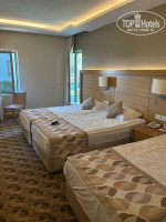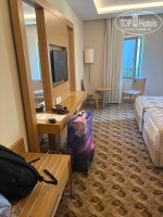 Отдыхали в данном отеле с 06.07.2025 по 12.07.2025г, две семьи с детьми. Приехали в отель в 5 утра. На ресепшен был мужчина, по-русски плохо понимал, оформил нас, мы показали сопроводительное письмо, надели золотые браслеты, сказал, что номеров свободных нет, заселение в 14.00. Мы просили комнату отдыха (которая была на 1 этаже), он сказал, что нет такой. После завтрака поднялись спросить не освободились ли номера, сказали, что 1 номер есть, а второй в бунгало, еще не освободили, но могут предложить в корпусе D два номера рядом на 1 этаже. Один номер был выше категории, чем бронировали, но сказали, что доплачивать не надо, так как мы по письму от топхотелс. И в 8.30 мы уже были у себя в номере. Корпус отдален, шума вообще не слышно, за окнами сад с плодовыми деревьями, приходят черепахи. Вай фай ловит везде и на пляже и в номере и скорость очень хорошая. Кондиционер работает только с закрытой балконной дверью.