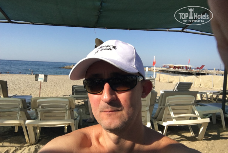 Море - красивое, теплое, правда течением к берегу прибило много водорослей. Интересный факт - на следующий день течение видимо поменялось, вода стала прохладнее, и появился мусор в береговой зоне. За весь наш период пребывания мусор то пропадал, то появлялся, поэтому временами море было чистым, и временами не очень, но это около берега, я плавал всегда к буйкам и там море было идеальным. В первый же день я порезал палец на руке об каменную плиту, которая находится слева ближе к пляжу отеля HEDEF, края плиты очень острые, поэтому мы больше в том месте не входили в воду и не купались там, справа вход нормальный, плюс еще я примерно 20 булыжников с острыми краями перекинул к волнорезу между нашим отелем и отелем SERENITY, вход стал лучше.