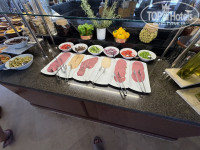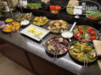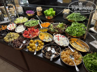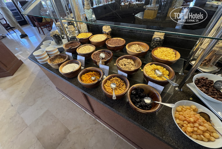 В целом, питание хорошее, завтрак каждый день одинаковый (булочки, круассаны, блинчики, яичницу готовит повар, нарезки сыр и колбаса, много овощей), обед и ужин каждый день разные кухни мира, из горячего были креветки, кальмары, лазанья, шашлычки из курицы, кюфта, печеная картошка, тушеная говядина, тушеный ягненок с черносливом, жареная на углях рыба, разнообразие перечислять можно бесконечно) вкусные десерты) фрукты: яблоки, бананы, арбуз, дыня, виноград, финики, сливы.