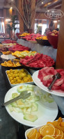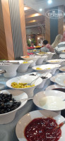 По еде: овощей много, зелени, фруктов (арбуз, слива, нектарины, апельсины, абрикосы не спелые, дыня и бананы появились на 5-ый день отдыха), картофель фри ( не вкусный, не хрустящий, ребенок даже есть не стал) , рис, макароны, один раз пюре картофельное, курица, индейка, сердечки, фрикадельки из говядины ( не полуфабрикаты), тушеные и гриль овощи, пиде, выпечка, хлеб разный, оливки, на завтрак блинчики, омлет, наггетсы. Не было просто глазуньи или омлета с овощами, айрана, кураги, печенья в ассортименте, что для 4-к обычно норма. Сладостей много, вкусно, пахлава, но пирожных -треугольников которых так много на фото в отзывах не было, только за день до отъезда появилось и только в одном варианте. В турецкий день НИЧЕГО особенного по еде не было. И даже никто не понял, что это турецкий день/ночь. Понятное дело голодным никто не будет, все найдут, что поесть для себя и накормить ребенка. Алкоголь местный, пиво норм, вино из бутылок сносное, хоть я не люблю сухое вино. Джин, виски, водка есть- но я не пробовала. Прохладительные напитки в ассортименте. В течении дня делают гезлеме, пончики- лепешки, арбуз в баре.