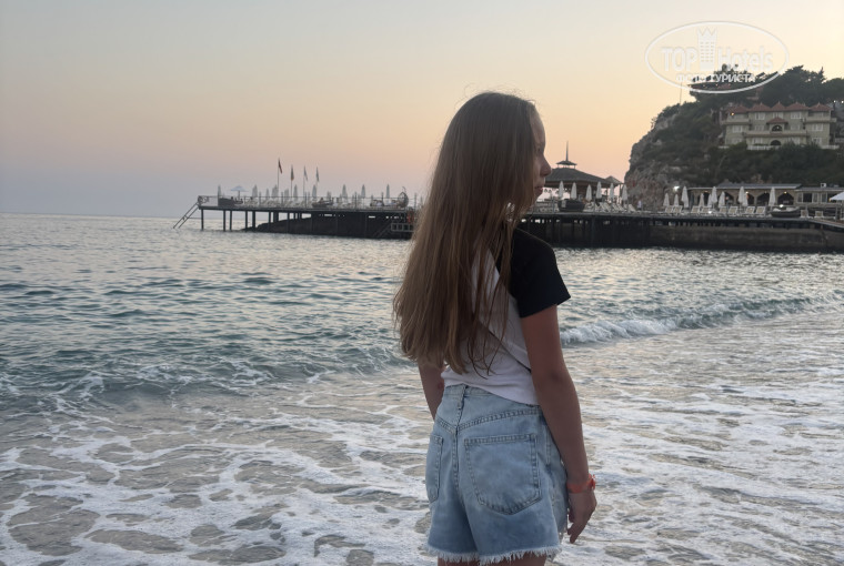 Пляж идеальный, вход в море удобный песочек, лежаков на море всем хватает, даже на пирсе. На пирсе есть бар, так же при отеле есть VIP пирс, где можно забронировать за 100€ кабану, ее обслуживает официант, мы брали)))) очень понравилось, мы с моря даже не выходили)