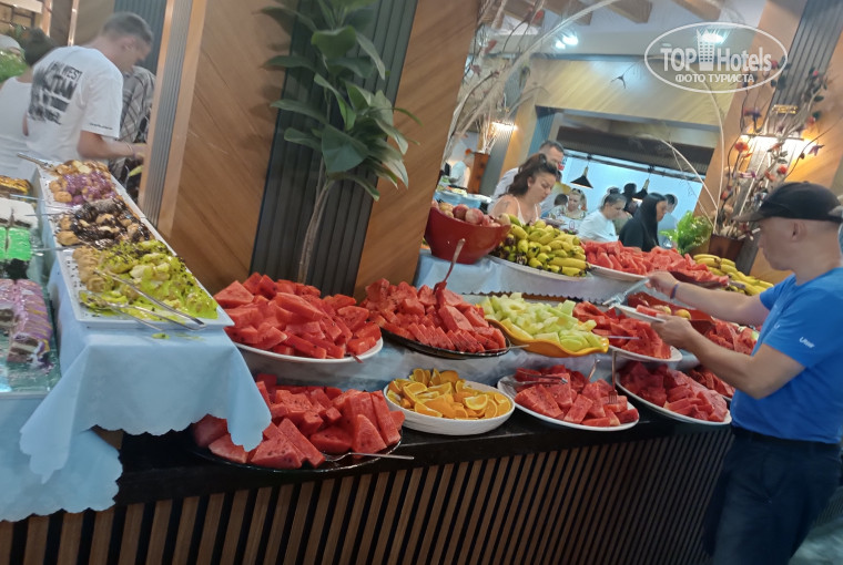 Расположен он от моря довольно не близко, но проблем не было, автобус от отеля до моря курсируют по расписанию, как положено. Отлично. Питание отличное. Наедались и объедались. Выбор есть и для взрослых и для детей. Фрукты есть. Анимация отличная.