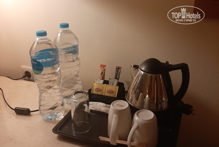 Отдыхали в этом отеле с подругой и ее дочкой с 11 по 20 июля 2025г. Прилетели поздно вечером, заселили быстро, никаких долларов не требовали. Номер попался с видом: налево посмотришь- стройка соседнего отеля и море. Направо посмотришь- наш отель и море. Поэтому если вы пессимист, то смотрите на стройку, ну а мы оптимисты, поэтому смотрели на море:) Сам номер вполне чистый, со всем необходимым. Все работало ( свет, кондиционер, чайник, фен, вода). Только если кто любит подольше поспать, то не получится, так как стройка начиналась в 7.30. Вечером стройка не мешала, можно спокойно посидеть на балконе в тишине. Пару раз очень мешали комары. Как налетели, за минуту покусали и мы сбежали в номер. В общем, они не каждый день, а какими-то налетами:) Но когда гуляешь по отелю, комаров нет, они в кустах сидят и не мешают.