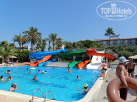 Отдыхали с 23.07.2025. Летели Azur в полете не кормят, если полет более 5 часов, наш полет был 4-55, не кормили, давали напитки только. Отель - первая линия, зеленая территорией, 3 бассейна, аквапарк для детей и 4 горки для взрослых, на этом плюсы закончились. Минусы отеля, номерной фонд старый, у нас в номере были вздутые обои, грязный ковролин, продавленный матрас, и главное почти не работал кондиционер, вызывали работников, они говорят, что работает, кондиционер дул теплым воздухом, просила поменять номер, сказали нет номеров вообще, и кондиционер у меня работает. Ночью спали с открытым окном, но прохлады не было совсем, было очень жарко и душно. В номере в бутылочках были гель для душа и шампунь, мыло куском, щеток и пасты нет, полотенца были, но не идеально чистые. В отеле было действительно много народу, везде очереди за едой, за напитками , за столиками в ресторане. Еда однообразная, если что-то мясное, то огромная очередь, чуть позже придёшь, уже ничего нет. В итоге наша главная еда была спагетти и арбуз. Для детей аквапарк работал с 10-12 и с 14-16, также и горки взрослые работали. Персонал какой-то ленивый, везде грязно, убирают плохо, официантов мало, посуды не хватает, то вилок нет, то стаканов. Так очередь за пепси выстоишь, а стаканы закончились, и все стоят ждут. То вода в холодильнике заканчивалась, когда будет спрашиваешь, только через час. А больше нигде воды и нет! Отель не соответствует 4 звёздам. На пляже очень мало шезлонгов и зонтиков, шезлонги пластиковые некоторые были сломаны. На пляже песок, вход в море тоже песок, через метр начинаются огромные валуны, если волны, то тебя кидает и можно поранить ноги. Приходилось ходить к другим отелям для купания. Анимация была только вечером примерно с 20-30 детская, потом взрослая, проходила в амфитеатре на общей территории с соседней пятёркой, больше никакой анимации не было. Если вы готовы быть только на территории и на пляже, а также готовы к постоянным очередям, то можно и приехать сюда.