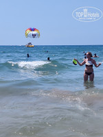 Пляж хороший, но берите с собой аквашузы/кораллки все равно, не смотря на то, что это песчаный пляж, так как в дневное время песок сильно нагревается и можно обжечь ноги. Вода в море чистая и теплая (в июле).