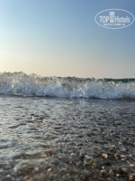 Первым делом направились на пляж: полотенца выдаются в обмен на карточки, которые дали при заселении. Свободных лежаков достаточно, проблем на протяжении всего отдыха не возникало (не было необходимости вставать в 6 утра и выбирать место). Море наиболее чистое в первой половине дня, после обеда волнами приносит мусор. Пляж песчано-галечный, для более удобного входа есть отдельная тропа; в воде видны рыбы, чуть глубже можно увидеть пару морских ежей. Отдельно расположены душевые, раздевалка. В бассейне купались пару раз (народу много, лежаки заняты) чисто из интереса, хотя основным осталось море (в принципе ради чего и приехали). Также в определённые часы работает аквапарк.