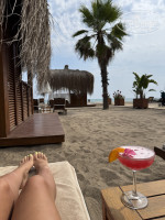 Пляж красивый как уже писали много в отзывах, приходили на пляж и к 10 и к 12 и после обеда - всегда были свободные лежаки в тени , но вход в море вообще не пологий, очень быстро становилось глубоко. И два раза кусали рыбы!бар у пляжа отличный. мороженое около кафе у пляжа - выбора много. есть qr код на зонтиках, можно заказать коктейль и быстро принесут. Минус для меня был - только два душа на пляже, один на входе, другой у павильонов. Снимали павильон - обслуживание там замечательное. Фрукты , напитки , еда, мороженое, что захочешь.