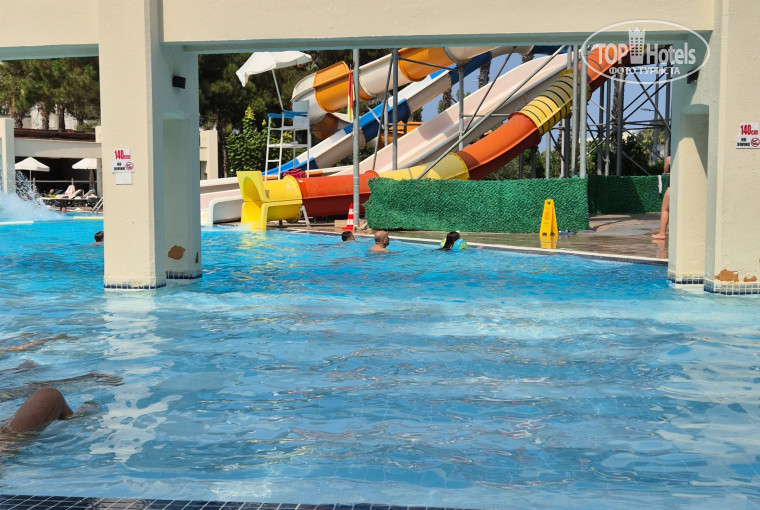 В целом отдыхом остались довольны. Еда на завтрак, обед и ужин была разнообразная, давали рыбу, говядину, курицу в разных вариациях, большое разнообразие свежих овощей (паприка, помидоры, огурцы, салаты), супы, булочки. В отеле есть пирс откуда с двух мест можно было прыгнуть в море, один выше другой ниже. Лежаков на море хватало всем. Мы приходили на море к 9 утра и лежаки можно было спокойно найти. На территории отеля есть кондитерская, которая работает с 10:30 до 18:00, там в прохладном помещении дают мороженое, пирожные, печенье, с 13:00 до 15:00 там же пекут вафли, на которые можно добавить присыпку и сладкий соус. Рядом с кондитерской находится кофейный дом, где можно бесплатно заказать 7 разных видов кофе, чай и какао. Персонал отеля улыбчивый, быстрый и внимательный. Лобби бар работает 24/7. В лобби есть вход в закрытый бассейн и бесплатный тренажерный зал. По всей территории интернет платный, бесплатный есть только в лобби. На 2 территории отеля есть бассейн с горками, так же там есть пивной бар, где можно взять пиво в стеклянной бутылке и заказать орешки или попкорн. Рядом с этим бассейном есть ресторан, где можно заказать еду по меню, например картошка фри, бургер, пицца, суп от шеф повара, медовый торт и т.д. В этом же здании с рестораном можно взять мороженое и заказать напиток в баре. Анимация была хорошая, в главном бассейне проходила анимация. Все аниматоры хорошо выполняют свою работу, но особенно понравилась аниматорша Маша, она проводила акваэробику и степаэробику. Так же она ходила общаться с гостями отеля очень внимательно.