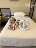 Отдыхали семьей 3 взр плюс ребенок, номера все большие и удобные, 3 кровати, диван и плюс принесли детскую кроватку. Но номер нам достался с видом на стройку, где нельзя было открывать занавески, так как через буквально 15 м на этой же высоте на тебя смотрят рабочие со стройки. В ванной комнате очень удобно два умывальника везде. И что меня особенно поразило и порадовало так как я была первый раз в такой ситуации, Это работа противопожарной системы. В отеле кто-то спалил чайник и система уловила дым, хотя внешние это не было видно. Я находилась в номере, неожиданно громко включилось радио и звучало предупреждение на английском, который я увы не знаю. Выглянув в коридор я увидела срабатывания всех дверей по коридору, Ранее я и не замечала этих дверей, их оказалось достаточно много, через каждые пять номеров. Они все самостоятельно закрылись и заблокировались и как в последующем выяснилось в каждом отсеке был лестничный спуск до Выхода на улицу. Так что читайте всегда планы Эвакуационных Выходов, может оказаться очень полезным! Еда в отеле хорошая, Алкоголь нормальный, Официанты везде приветливые, Кроме Официантов в баре на ресепшен. Что совсем огорчило это прекрасный,но ледяной детский бассейн. Дочка которая просто обожает бассейны, плакала и не могла в нём купаться. Детская комната отвратительная, малюсенькая метров не более 20 и с Очень маленьким набором игрушек. Дочка также отказалась туда ходить. Ещё из минусов это отвратительный бар на пляже, Он маленький, В виде вагончика какого-то, очень старый, сзади какой-то мусор. Стоишь в очереди за напитками, тут какие-то под ногами лужицы. Очереди набирались в баре очень большие. Прямо все впечатление от отеля испортил этот бар, Совсем не по уровню. Если бы отель сделал подогреваемый детский бассейн, хорошую детскую комнату и реконструкцию данного бара, то заслуживал бы твердые пятерки!