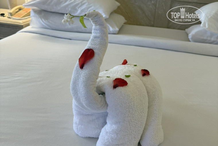 НОМЕРА. Номер достаточно просторный, все в нормальным состоянии. Сразу немного расстроил холодильник. Казалось, что он не охлаждает, но потом все наладилось. Так же в номере очень странный сейф, с которым мы так и не подружились, поэтому им и не пользовались. Мебель в хорошем состоянии, сантехника тоже. Ремонт можно немного и обновить, но ничего критичного не заметили. Уборка нормальная. Мы всегда оставляем уборщику чаевые, этот отель так же не стал исключением. В качестве благодарности нам каждый день крутили фигурки из полотенца, потом и мы ему в ответ стали крутить) Воду в номер ставили ежедневно, по 2-3 больших бутылки. Чистые пляжные полотенца каждый вечер оставляли на нашей террасе.
