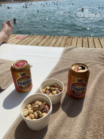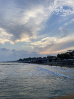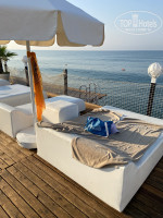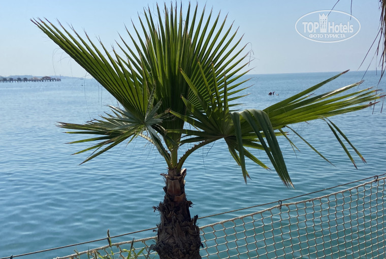 Море очень тёплое, чистое, к вечеру небольшие волны, пляж песочек, лежаков было много свободных в любое время , большой пирс с мягкими белыми диванчиками и спуском в воду. Чтобы их занять приходили в 7 утра, и то были почти все заняты.