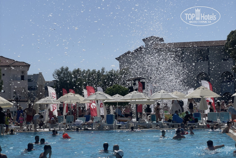 С самого начала приезда нам очень понравилось отношение ресепшена к нам. Предложили посмотреть номера, выбрать номер который нам больше понравится. Мы приехали в 10 утра, нас сразу направили на поздний завтрак, далее мы прошлись по отелю, и где то в 12-13 нас уже заселили в номер. Номера действительно подуставшие, даже как будто бы грязноватые, но это чисто мое мнение. Территория отеля небольшая, гулять в нем негде. Вечерами мы выходили на променант который буквально в 3 минутах, и гуляли по нему. Либо выходили в городок и гуляли по магазинам, тоже все близко расположено. Кстати девушка на входе завлекает посмотреть кожаные куртки, можно съездить посмотреть, а далее предлагают бесплатно отвезти в античный город. Этим мы и воспользовались. Пешком до античного города около часа по променанту( слева от отеля). А если идти в правую сторону по пляжу, то можно дойти до черепах, минут 40. Еды в отеле достаточно, мы были с ребенком, не отравился, довольный. А вот я один день плохо себя почувствовала, рвало ( возможно переела)), но за ночь все прошло.Алкоголь нам не понравился, какой то разбавленный. Анимация каждый вечер, местами интересно, местами скучно, думала будет повеселее. В целом отель очень даже ничего.Но второй раз бы не приехала.
