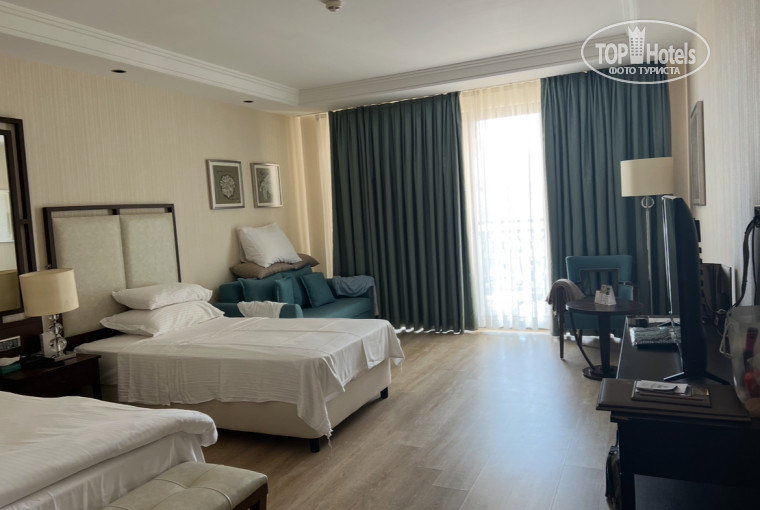 Второй раз отдыхаем в этом отеле. Нравится месторасположение отеля, природа, море. Хорошее питание, обслуживание, отзывчивость сотрудников ресепшен. В этом году в отеле отдыхало много семей с детьми. Было шумно. В главном ресторане во время ужина иногда трудно найти свободный столик. Не понравилось нововведение вечернего концерта на терассе из-за очень громкого звучания динамиков. Многие номера видом выходят именно на терассу, и громкая музыка мешает отдыхать в вечернее время. Но солнце,море и хорошее настроение все сгладили.