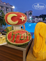 В отеле столько активностей, что все нам было просто не охватить, дети не ходили на утреннюю анимацию, тк мы то в бассейне, то на море, то на экскурсии. Не посещали вечерние мероприятия ( была и живая музыка и какой то розыгрыш призов и караоке), так как после вечернего шоу, уходили в номер отдыхать от насыщенного дня. Муж принимал участия в водном поло, воллейболе, дарце и играх в бассейне.