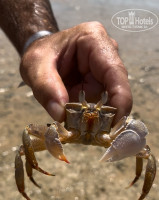 Вход в море с берега - плита засыпанная песком. Необходимы акватапки. В море с берега до глубины нужно пройти метров 250. Пройдя метров 150 - 200 глубина будет до колена. С понтона глубина сразу метра два. Есть на что поглазеть,если есть маска. И с понтона тоже можно разглядеть разнообразных рыбок, скатиков, морских звезд. Один раз даже увидели песчаную змею, которая ползла в воде на мелководье. После 16.00 в море начинается сильный отлив.