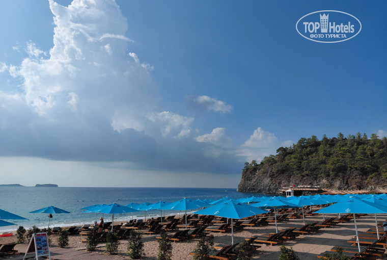 Море просто сказка, такого красивого моря я давно не встречала, хотя были дни,когда море штормовое и приплывал мусор, но как-то достаточно быстро он пропадал. Море тёплое в июле было. Заход в море достаточно резкий, но мы такой и искали, зашёл и поплыл) плавали с масками на пляже и возле скалы. Разновидностей рыб немного, вида 4 примерно) но самой рыбы в море много плавает. И даже видели двух скатов. Мест на пляже много, всегда были свободные лежаки. По утрам разносят ведро со льдом, в котором вода в бутылочках. А также фрукты на тарелочке. Есть qr-код на каждом зонтике, можно сделать заказ из бара. Мы отдыхали возле биргардена, ближе к кабанам. Вот кстати там не помешал бы ещё один душик, а то только для ног мойка, в дул приходилось пройтись.