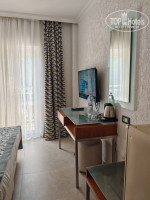 Поселили в 07 корпус, окна выходили на задний двор, вид один из худших в отеле (есть похуже на мусорку), обычно все корпуса выходят на красивую зелёную территорию и смотрят друг на друга. Утром часов с 08 утра перевозят баллоны с газом в громкой тележке и мимо снует много персонала, пару раз жутко пахло канализацией рано утром. Сам номер неплох, вполне обычный, если бы не несколько фактов, ремонт сделан,сантехника новая работающая, холодильник древний, в нем плесень, мы им не пользовались, есть чайник, две чашки, шампунь, кондиционер, гель для душа, тапочки, губки для тела, мыло. Если у нас что то заканчивалось брали в коридоре, все в открытом доступе, в том числе простыни и пододеяльники. Несколько раз и я и младший ребёнок проснулись покусанными, с красными пятнами на ногах, оказалось мошка. Мебель в номере вся древняя, со сколами, но при покупке номера было написано что ремонт 2011 года, видимо так и есть. Кондиционер работал исправно, иногда шумел, но потом приходил в норму. У соседей 4 дня не работал слив и не было один день воды. Как-то отключали свет в городе и карточка перестала работать, ходили на рецепшн перепрограммировать. Матрасы старые, белье не белоснежное, старенькое.