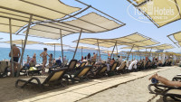 Пляж совсем недалеко от отеля, лежаков всегда было много свободных, они удобные, особенно радовало сплошное затенение. Пляж чистый, а вот море не очень. Так вода прозрачнейшая, но периодически откуда-то на носило микропластик, но это не вина отеля. Рядом пункт водных развлечений. Банан 5 евро, парашют 70 за одного, 120 за пару, есть и другие плавсредства.