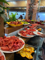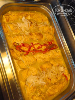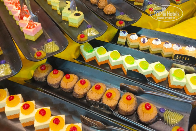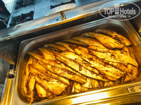 Ресторан работает по системе "шведский стол". Завтраки: стандартный набор (яйца, каши, сыр, колбаса, овощи). На Обедах и ужинах: всегда 2-3 вида мяса, рыба 2-3 раза в неделю. Овощи и фрукты свежие, выбор хороший. Десерты сладкие и вкусные. Соки, алкоголь, газировка присутствуют.