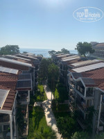 нам повезло, номер был на 5этаже в главном корпусе(лифт был один на весь корпус, малой вместимости, больше 4х человек-перегруз, ждать приходилось долго)Вид с балкона открывался на море и сбоку на гору.