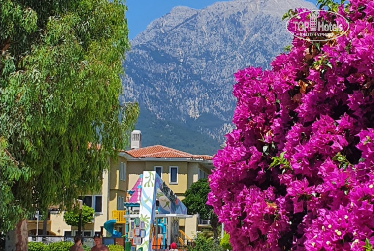 Дорога к морю через сад отеля со множеством птиц и плодовых деревьев отдельное удовольствие. На территории отеля можно приобрести практически все для пляжного отдыха и подарки близким. Детей развлекают на площадке, у бассейнов и в аквапарке.