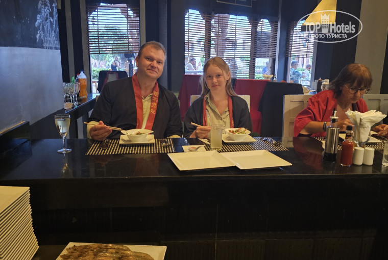 В отдых с выше 7 суток входит посещение ресторанов бесплатно (итальянский,французский,японский,рыбный,ливанский). В японском ресторане организован процесс приготовления при гостях, при готовке используется Fire show.