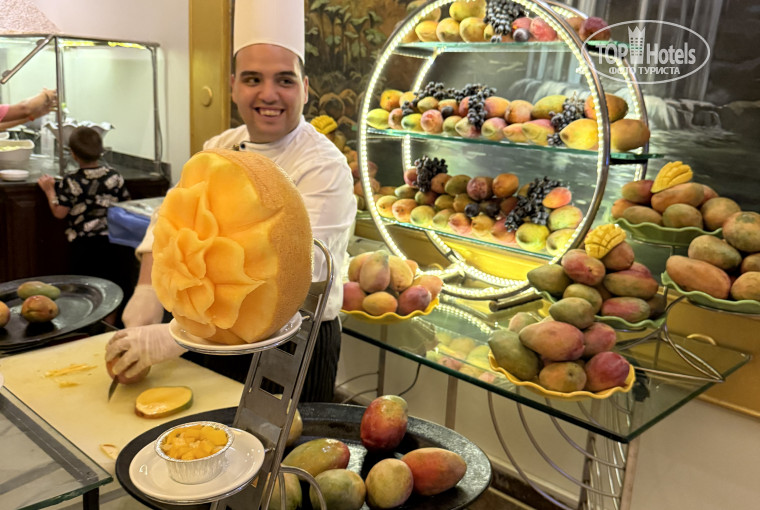 3. Еда - из плюсов: каждый день был гриль: курица, рыба, говядина, ягнятина. Нормальный выбор овощей, стандартные фрукты - дыня, сливы, яблоки, виноград, бананы, манго (несколько раз). Из минусов - отсутствие сильного разнообразия (это в том случае, если вы сильно придирчивы к еде), на каждый день в целом можно найти, что поесть - пасты, пиццы, картофель фри, мясные блюда. Большой выбор десертов и выпечки.
