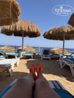 5. Пляж - несколько уровней, лежаков много, но по традиции, многие туристы (или по их просьбе - бич-бои) занимают места рано утром или вечером)). Я приходила утром, где-то в 8:00. До 10 часов можно найти свободные места 100%. На бассейне кстати такая же ситуация с заниманием лежаков, люди занимают с утра и не приходят весь день, но это бич многих отелей. Вход в море - с понтона, на берегу можно поплескаться, но зайти глубже только через понтон.