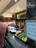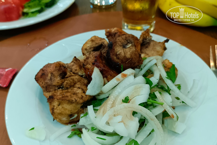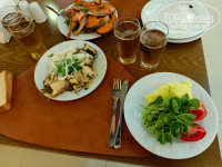 Ресторан в отдельно стоящем здании, просторный, мест (за редким исключением) всегда хватало. Утром яйца, зелень, сыры, колбаски, каши; мед и масло в маленьких коробочках. В обед меню поинтереснее- супы, овощи на пару и тушеные, зелень, курица и рыба на гриле, есть гречка, окрошка. На ужин дополнительно что-то готовят на улице, например баранину на огне или печень на гриле. Возле пляжа бар с хорошей стритфуд кухней- бургеры, шаурма (наименований по четыре каждого), луковые кольца, картофель фри. Есть мороженое. Из напитков пиво (Троя, Tuborg, Carlsberg), алкоголь- виски, водка, ракки, джин, вино (бутылочное на разлив), коктейли.