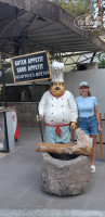 Еда по типу "шведский стол". Завтрак, обед и ужин, ночной суп в 23.00. Еда разнообразная, можно выбрать на любой желудок. Посуда чистая. Давали арбузы, дыни, яблоки, персики, абрикосы, виноград, сливы. Между можно перекусить в снек баре возле бассейна. Там дают гамбургеры, картошку фри, наггетсы, овощной салат, пиццу, что-то вроде шаурмы, все бесплатно. Также рядом напитки алкогольные, безалкогольные. Неподалеку бесплатное мороженое разных видов, кстати очень вкусное. Тут же постоянно нарезают арбузы сладкие и прохладненькие, самое то в жару. Тоже все бесплатно. Так же по левую руку от снек бара есть охлаждённые напитки и делают вкусные вафли, которые можно наполнить самостоятельно разными начинками. В детском сквере есть ещё бар, там можно взять чай, кофе, воду и ещё что-то, работает до 23.00. Удобно для отдыхающих с детьми, тут же качели, гамаки, тренажёры.