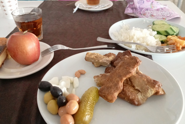 Да номера уставшие, но впринципе если учитывать что это 3, то можно закрыть глаза на мелочи, когда выбирала, понравилось, что есть горки и к морю не далеко. Но не учла пару нюансов: вайфай платный 5 евро в сутки везде, думала хотя бы лобби бы был, впринципе лучше подключить тарифы дома, тут какой-то ажиотаж 50 гб 40-50 евро, обошли кучу лавок другого тарифа типа не нашли. Я включила теле2 роуминг 660 рублей-1 гб. Деньги менять не нужно, тут все расчитывыются в долларах и евро, рубли можно поменять, курс смотрите,нас первый раз обманули, при обмене. И за едой реально очереди, если придешь поздно есть нечего, народ набирает как последний раз и еды не хватает, с вилками и тарелками тоже проблемы, но решаемо. Из мяса курица не понятного вида вечером, за которой отстоите минут 40, остальное котлетки с соей, ну в принципе ребенок питался макаронами, рисом и сладкими манниками, я оливками и сыром, столиков не хватает, лежаки вечно заняты, кондер над кроватью прямо,мы заболели на четвёртый день. Ну мб когда народу поменьше здесь все приемлемо, когда под завязку персонал не справляются, хотя стараются. В баре наливают в маленькие пластиковые стаканчики по 0.2 все даже пиво)) в стекло только на втором этаже, пиво и газировка наподобие: миринда, спрайт, кола нормальные, остальное не пробовали. Воду можно взять в холодильниках внизу запечатанные стаканчики, отдает хлоркой. Ребенку понравилось на горках, вечером была пенная дискотека,так вечером играет турецкая музыка, много турков семьями, несколько европейцев были, лежаки все заняты у бассейна с вечера, после обеда у моря можно найти свободные, последний автобус на пляж в 16. Ну если учесть, что 3 звезды отель, норм, хозяевам нужно доработать многое, чтобы на 4 метить хотя бы.