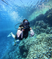 Пляж — настоящая находка! Просторный, с удобным заходом в море. Особенно впечатлил коралловый риф, к которому можно добраться по пирсу. Прямо у отеля видели и черепаху и ската!!! А про различную цветную мелочь можно даже не писать, просто как в аквариуме. Лежаков хватает всем, есть как места у воды, так и более уединенные зоны.