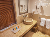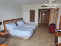 Номер: номер у меня был категории DELUXE ROOM SWIM UP, номер 4103. Это номер с личным небольшим бассейном (примерно 5 на 5 метров, глубина 1,4), лежак на балконе и персональные лежаки за бассейном на газоне - если не хочется идти на пляж. Расположение - с видом на море. Рекомендую, очень хорошо вечером поплескаться в бассейне, когда море и остальные бассейны недоступны. Бассейны персональные видел как чистили постоянно днем и промывали фильтр. Номер просторный, есть сейф, чайник с чаем и растворимым кофе+сухое молоко (почему-то по два пакетика, хотя в этих номерах я видел семьи заселялись). Бутылка 1,5 литра воды, гладильная доска с утюгом. Кондиционер центральный, шумноват, но охлаждал хорошо. Панель телевизора, не включал за все время отдыха, мини-холодильник пустой. Две кровати полуторки или одноместные, так и не понял (см.фото), матрас удобный, софа, стол, стул, тумба. Мебель конечно атас, бубушкина, но вся исправна. Ещё поразила дверь к соседям - хоть она и закрыта, но из-за её наличия шумоизоляция отсутствует - слышно в деталях, о чем говорят в соседнем номере). В комнате была одна (!!!) свободная розетка, если заселиться вчетвером - непонятно, как заряжать телефоны?!