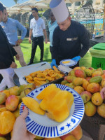 Бесконечное количество сладостей, фрукты, манго, йогурты, сыры, колбасы, рулеты.